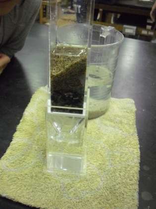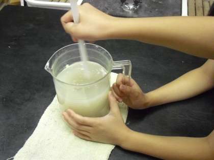 水について説明を聞いた後は、実験を行いました。汚れた水がどんどんきれいになっていくので、とてもおどろいていました。なお、写真の他への転用は、ご遠慮くださいとのことです。