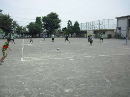 午前中は、体育館で、ドッジボールとポートボール、午後はキックベースが行われました。国士舘大学のボランティアサークルの皆さんにもお世話になりました。