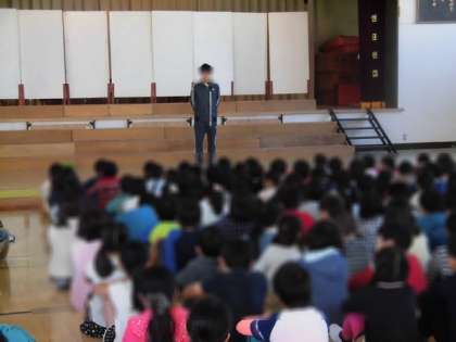 今日は、学級担任の先生から、「見える天才」と「見えない天才」についてのお話がありました。あるサッカー選手が「毎日3000回も腹筋をしている。」と紹介があると、「えー!」と驚きの声が上がりました。天才だと思っていた人が見えないところで頑張っていることがわかり、「自分も頑張らなくては。」と、思ってくれたことと思います。