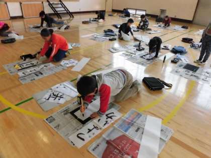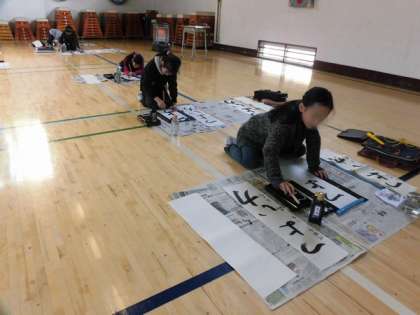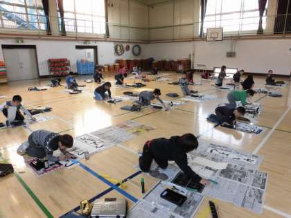 本日、体育館にて席書会を行いました。穂先を綺麗に整え、気持ちを落ち着かせ、一筆一筆心を込めて書きました。