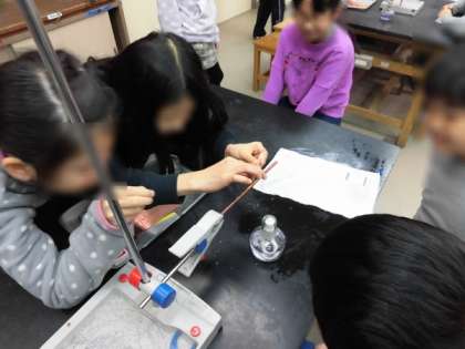 4年生になり、実験をする機会が多くなりました。3学期は「もののあたたまり方」ということで、金属や水、空気がどのように温まっていくのか調べます。マッチやアルコールランプの使い方、上手になりました。