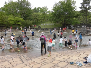 3・4年生で、府中の郷土の森博物館へ行きました。グループで昔の家や小学校を見たり、友だちと楽しく水遊びやお弁当を食べたりして楽しみました。電車の乗り方や、安全に施設を使うことにも気を付け楽しく過ごせた遠足になりました。