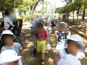 3年生は、社会科「私たちの町」の学習で学区域の北コースの探検に行きました。北コースにはどんな建物や自然があるのかを調べました。学習した地図記号を書いてメモしている子もいました。楽しく学習することができました。