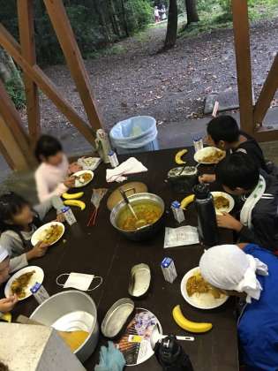 協力して、飯盒炊さんが進み、おいしくカレーライスを食べることができました。