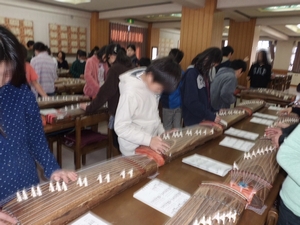 5年生は、2月3日(金)、一人一面使って、箏体験をしました。たっぷり2時間、箏の練習をし、学習の最後には、全員で「さくら さくら」の二重奏を演奏することができました。