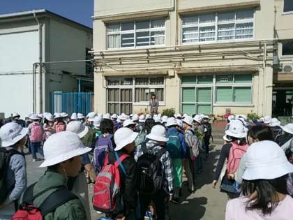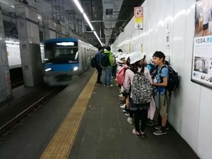 絶好の遠足日和の中、元気に出発式を済まして駅に向かいました。