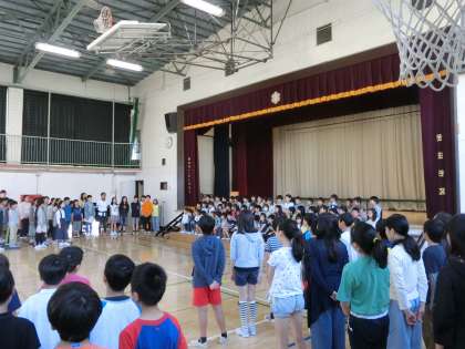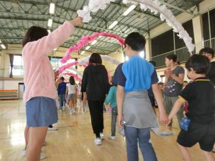 4月20日に、「1年生をむかえる会」がありました。全校児童が体育館に集い、2年生から6年生まで代田の“お兄さん・お姉さん”たちに「ようこそ、代田小へ!!」とかんげいしてもらいました。花のアーチをくぐって入場した時は、ややきん張気味の子どもたちでしたが、退場の時には笑顔満点!!とても温かい会になりました。