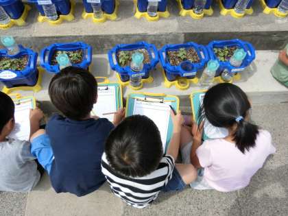 4月にまいた、アサガオの種。水やりをしながら「今日は出るかな?明日かな?」と待ちきれない様子の一年生でしたが・・・「芽が出た〜!!」朝一番の教室に歓喜の声がひびきました。生活科の時間に芽や葉を観察し、ワークシートに気付いたことや感じたことについてまとめました。「葉っぱの形が、ハートみたい。」「ぼくのは、ちょうちょの形。」と感じ方は十人十色です。道徳の時間「うまれたてのいのち」の学習では、「ぼくたちのアサガオも、生まれたての命だね。」「大切に育てたいね。」との発言から、人や動物以外の“命”についてもみんなで考えることができました。これから夏に向け、アサガオとともに、1年生一人ひとりの成長も本当に楽しみです。