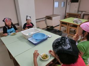 家庭科「朝食について考えよう」では、野菜いためについて学習しました。実際に調理実習をすることで、学習した知識を身に付けていきました。楽しみながら取り組み、最後の片付けまで6年生らしくしっかりできました。どのグループもおいしく食べることができたようです。