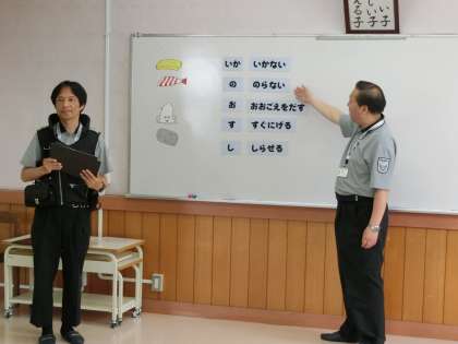6月13日、セーフティ教室がありました。1年生は、不審者から身を守るための授業として“いかのおすし”を勉強しました。●「いか」…(知らない人について)行かない。●「の」…(知らない人の車に)乗らない。●「お」…大声を出す。●「す」…すぐ逃げる。●「し」…知らせる。 の5項目。グループに分かれて、それぞれの項目について話し合い、全体で発表し合いました。また、防犯ブザーや防犯笛の使い方についても話がありました。いざという時の防犯ブザーなので、ご家庭でも定期的に作動確認をしたり、使い方について話し合ったりするなど、防犯について話題にできるといいと思います。自分の命を守るのは、最後は自分です。他人事ではなく、意識を高められるよう、学級でも引き続き指導していきたいと思います。