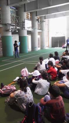 なかのビレジに着きました。中里小学校と一緒に開室式をしています。