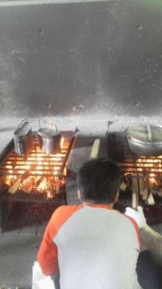 カレーの鍋が、かまどに置かれました。どの班も、なかなか順調のようです。