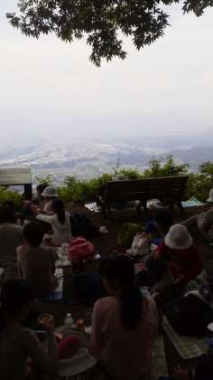 おむすびのお弁当を食べています。素晴らしい景色を見ながら、体力回復中です。