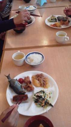 子供たちの食卓に、鱒の塩焼きがついています。どの子もよく食べています。みんなが元気なので、嬉しいです。
