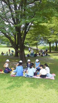 だいや川公園に着きました。予定より早めです。みんなお弁当を食べ始めました。