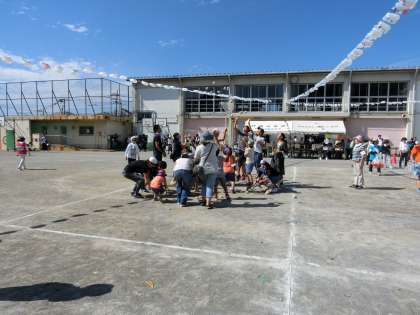 10月7日(日)、本校の校庭でまちぐるみ運動会が開かれました。10月としては気温の高い日でしたが、たくさんの方が参加されました。玉入れ、綱引き、大玉ころがしなど、子どもも大人も一緒になって、楽しい雰囲気の運動会でした。最後に、太鼓に合わせて東京音頭や世田谷音頭を輪になって踊りました。