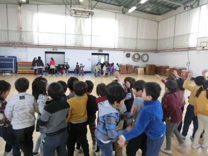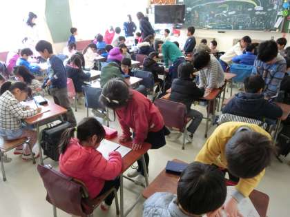 早いもので、入学から1年が経とうとしています。ちょうど1年前、代田小に交流に来た子どもたちですが、今度は“おもてなし”をする側です!!それぞれ、役割を決め準備し、プレゼントとしてメッセージ入りのメダルも作りました。当日は事前にリハーサルも行い、準備は完ぺきです。きらきらした目でやって来た幼稚園生・保育園生を迎え、いよいよ交流会が始まりました。みんなでゲームを楽しんだ後、学校を案内し教室へ。教室では、ランドセルを背負ってもらったり、プリントで学習体験を行ったりと、小学校での生活を体験してもらいました。サポートする1年生は、1年前をふり返りながら「ここは、こうするといいよ。」「だいじょうぶ。やってあげるね。」と、しっかり代田の“お兄さん・お姉さん”ぶりを発揮していました。4月には入学する子たちを前に、一生懸命な姿の1年生でした。