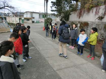 先週の一週間、挨拶運動で1年生が門に立ちました。初めは寒さで強張っていた顔も、元気に「おはようございまーす。」と挨拶するうちに、みるみる明るい顔になっていきます。毎朝10分程ですが、終わる頃には「もっとやりたい‼」と、皆きらきらの笑顔でした。教室に戻ってから、いつも自分から挨拶ができているかや、どんな挨拶があるか、それぞれの生活を振り返りました。挨拶をするとどんな気持ちになるか問いかけると「気持ちがすっきりする。」「挨拶しても、されても、気分がよくなる。」「今日の挨拶運動でやったときは、元気が湧いてきたし、ぽかぽかしてきた。」など、挨拶の力についてそれぞれが考えることができました。「おはよう」だけでなく、「ありがとう」や「いただきます」など、1年生の中で元気な挨拶が溢れるよう、声をかけていきたいと思います。