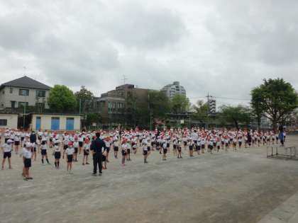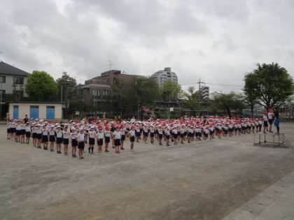 4月24日(水)に、今年度第1回目の体育朝会を行いました。運動会に向けて、整列や体操の隊形を確認しました。