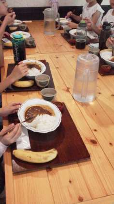 日光江戸村でカレーを食べています。日光最後の食事を終えたら、東京へ向かいます。