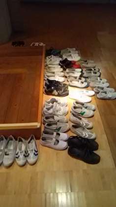 大広間に集まった子どもたちの上履きです。一人一人が、自分で気をつけて揃えています。5年生全員が指導を受けずに、このように頑張っています。