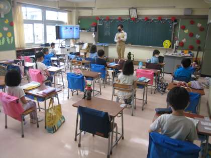 昨日から学校再開、段階的な教育活動として分散登校が始まりました。「学校再開 代田小学校ガイドライン」に基づいた新しい生活様式に子どもたちが早くなれることを望みます。1年1組Bグループの児童にとって初めて小学校で受ける授業や学級指導、少し緊張していましたがよく頑張りました。