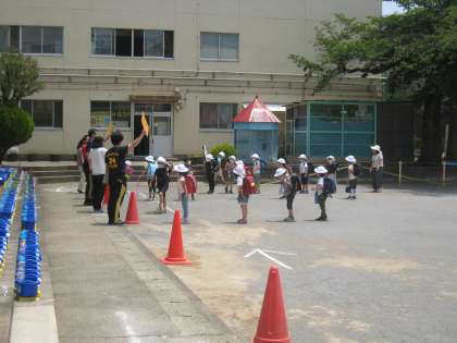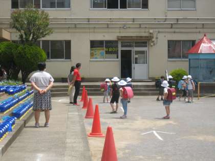 分散登校2週目、2回目の方面別下校。子どもたちは帰りの会が終わって、東昇降口付近で速やかにきちんと整列して下校しました。