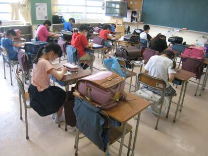 6/11分散登校のリズムに慣れてきた子どもたちが「学校の新しい生活様式」を早く身に付けることを願います。皆、国語のテストを真剣に受けていました。
