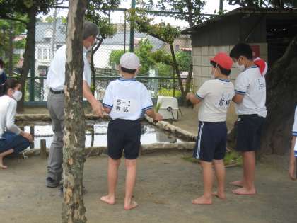 6/11分散登校のリズムに慣れてきた子どもたちが「学校の新しい生活様式」を早く身に付けることを願います。総合的な学習の時間で、講師の先生による田んぼに稲を植える体験学習に取り組みました。