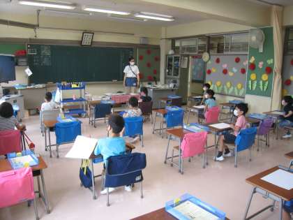 6/15図工専科による図画工作の授業で子どもたちは「ひかりのくにのなかまたち」を制作しました。セロファンなどの素材を使って色とりどりの楽しい”なかま”が誕生しました。