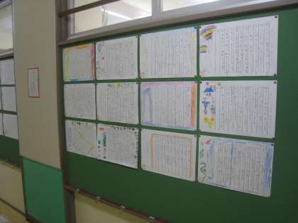 本日から夏季学習教室(前期)が始まりました。各学級の廊下や教室の壁には子どもたちが1学期に作成した壁新聞や作品が展示されています。個人面談の際にご覧ください。