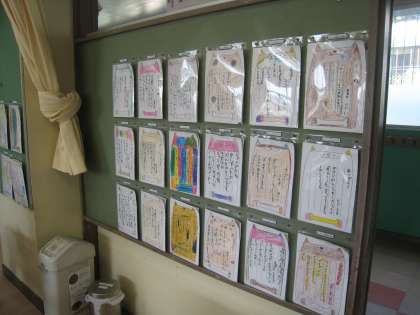 本日から夏季学習教室(前期)が始まりました。各学級の廊下や教室の壁には子どもたちが1学期に作成した壁新聞や作品が展示されています。個人面談の際にご覧ください。