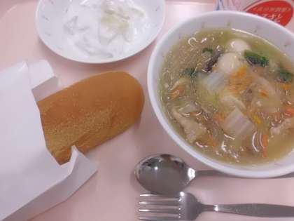 きなこあげパン、春雨スープ、アップルヨーグルト、牛乳