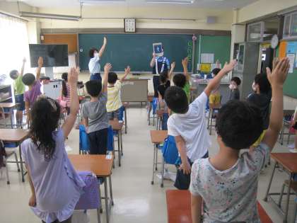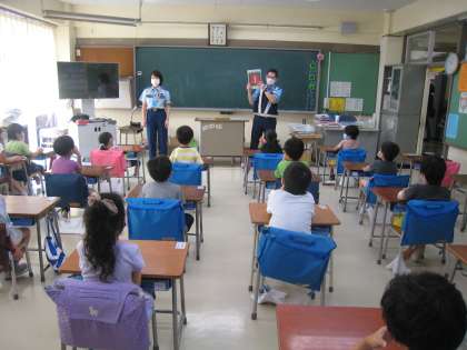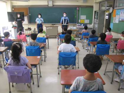 9月8日、1年生対象に交通安全教室を実施しました。正門前にて横断訓練を行う予定でしたが、熱中症指数が高かったので各教室で行いました。北沢警察交通安全課の職員の方から交通ルールを教えていただき、安全な道路の横断について学びました。