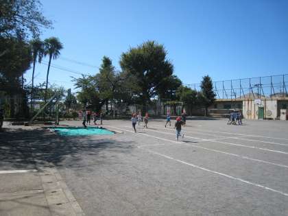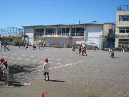 体育館棟耐震工事のため設置されていた工事車両搬入路の仮囲いが撤去されました。9/28中休み、秋晴れの空の下、爽やかな気候の中で児童は元気よく遊びました。