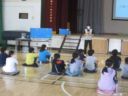 10月7日、4年生対象に東京都水道局職員の方をゲストティーチャーに招いて社会科の特別授業「水道キャラバン」を行いました。ねらいは、特別授業を通して、子どもたちに水道文化や東京都水道局の取組を理解してもらうことです。子どもたちは、映像や実験などを楽しんで、意欲的に水道のことを学びました。※掲載写真の他への転用は、ご遠慮ください。
