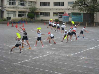 4年生の表現運動の演目名は「Four sense」です。体育授業で、子どもたちは4色の扇子を各々持ちながら一所懸命に取り組んでいます。「体育授業公開」へ向けて励んでいますので、保護者の皆様からも温かい声かけをお願います。
