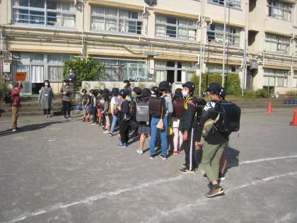 10月21日、地区班による集団下校を行いました。災害や緊急時を想定して、子どもたちが速やかに行動するとともに、各地区班の集合場所・解散場所を確認することが目的です。PTA校外委員の皆様に各班の担当としてお手伝いいただきました。ありがとうございました。