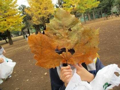 11月2日、1年生が生活科「あきを たのしもう」の学習のため羽根木公園へ出かけました。子どもたちは秋の自然に親しみ、落ち葉やドングリを集めて、爽やかな空気の中で楽しそうに過ごしました。