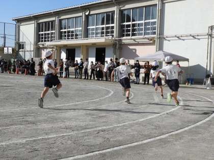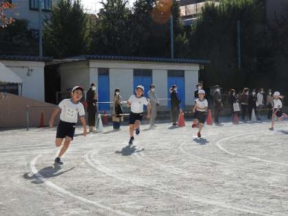 秋晴れの空の下、子どもたちは短距離走でベストを尽くして走りました。表現運動では今までの練習の成果を生かして「百花繚乱」を発表しました。子どもたち一人一人が作った色とりどりの花をあしらった花笠を被り、腰をしっかり落として花笠音頭を踊りきりました。保護者の皆様の温かい拍手が校庭に響き、清々しいスポーツの秋となりました。