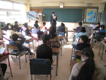 1月8日、始業式後の教室ではどの学年も子どもたちが担任の話をよく聞いて、提出物などをまとめていました。3学期も健康管理に留意しながら元気に学校生活を送ることを願います。