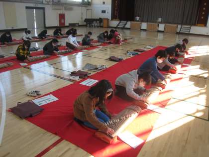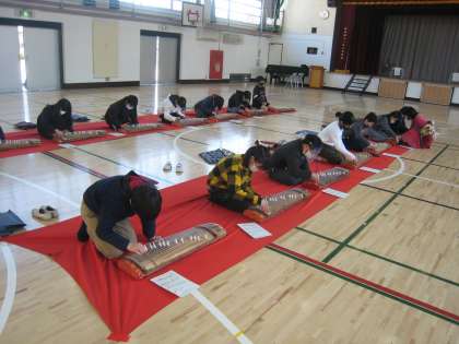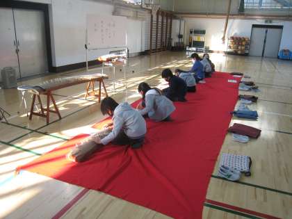 1月21日、筝の先生を講師に招き、5年生対象に「筝体験教室」を実施しました。筝という楽器は、2500年以上前に中国で生まれ、日本には1400年ほど前に雅楽の合奏楽器のひとつとして入ってきました。450年ほど前に雅楽から分かれ、新しい音楽のジャンルとして成り立ったということです。児童は、伝統的な楽器を一人一台ずつ使って「さくらさくら」を習い、厳かな筝の音色が体育館に響き渡りました。