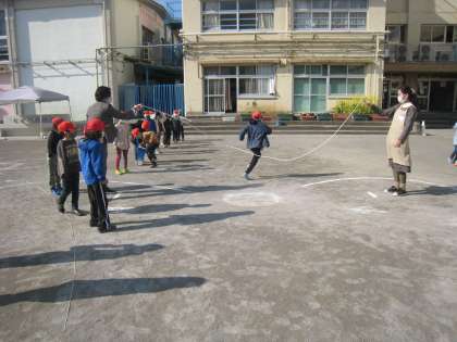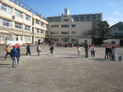 マイチャレンジタイム(長なわ)が始まりました。2/1,5,8,12の予定で実施します。子どもたちが運動の楽しさを味わい、目標をもって調整力、跳躍力の向上を図ることをねらいとしています。中休みは1〜3年生、昼休みは4〜6年生が長なわに挑みます。初日から寒空の下、子どもたちは協力して元気よく長なわに挑んでいました。