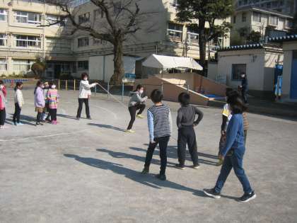 マイチャレンジタイム(長なわ)が始まりました。2/1,5,8,12の予定で実施します。子どもたちが運動の楽しさを味わい、目標をもって調整力、跳躍力の向上を図ることをねらいとしています。中休みは1〜3年生、昼休みは4〜6年生が長なわに挑みます。初日から寒空の下、子どもたちは協力して元気よく長なわに挑んでいました。
