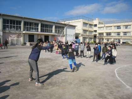 マイチャレンジタイム(長なわ)が始まりました。2/1,5,8,12の予定で実施します。子どもたちが運動の楽しさを味わい、目標をもって調整力、跳躍力の向上を図ることをねらいとしています。中休みは1〜3年生、昼休みは4〜6年生が長なわに挑みます。初日から寒空の下、子どもたちは協力して元気よく長なわに挑んでいました。
