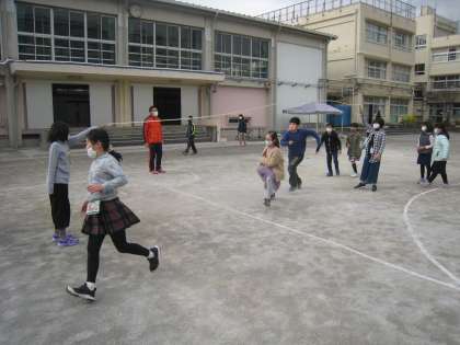 マイチャレンジタイム(長なわ)が始まりました。2/1,5,8,12の予定で実施します。子どもたちが運動の楽しさを味わい、目標をもって調整力、跳躍力の向上を図ることをねらいとしています。中休みは1〜3年生、昼休みは4〜6年生が長なわに挑みます。初日から寒空の下、子どもたちは協力して元気よく長なわに挑んでいました。