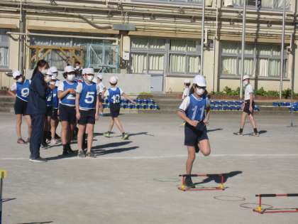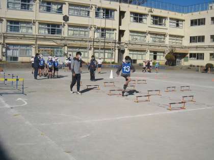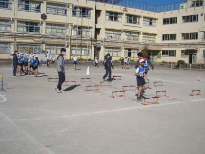 2月9日、6年生対象に陸上出前授業「かけっこキャラバン」を実施しました。東京都陸上競技会の講師の先生方と大学生の陸上競技現役選手から編成された13名のゲストティーチャーによる体験教室でした。子どもたちは、「走」「投」「高跳び」「走り幅跳び」「三段跳び」の5種目を体験し、充実した時間を過ごしました。
