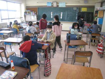 2月15日、6年生に代わり5年生がリーダーとなって縦割り班活動を行いました。活動内容は「卒業生ありがとうメッセージカード」の作成です。今までお世話になった6年生に向けて、1〜5年生が心を込めて思いを書きました。