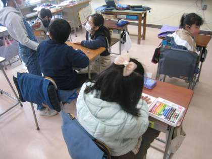2月15日、6年生に代わり5年生がリーダーとなって縦割り班活動を行いました。活動内容は「卒業生ありがとうメッセージカード」の作成です。今までお世話になった6年生に向けて、1〜5年生が心を込めて思いを書きました。