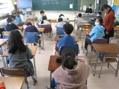 2月15日、6年生に代わり5年生がリーダーとなって縦割り班活動を行いました。活動内容は「卒業生ありがとうメッセージカード」の作成です。今までお世話になった6年生に向けて、1〜5年生が心を込めて思いを書きました。